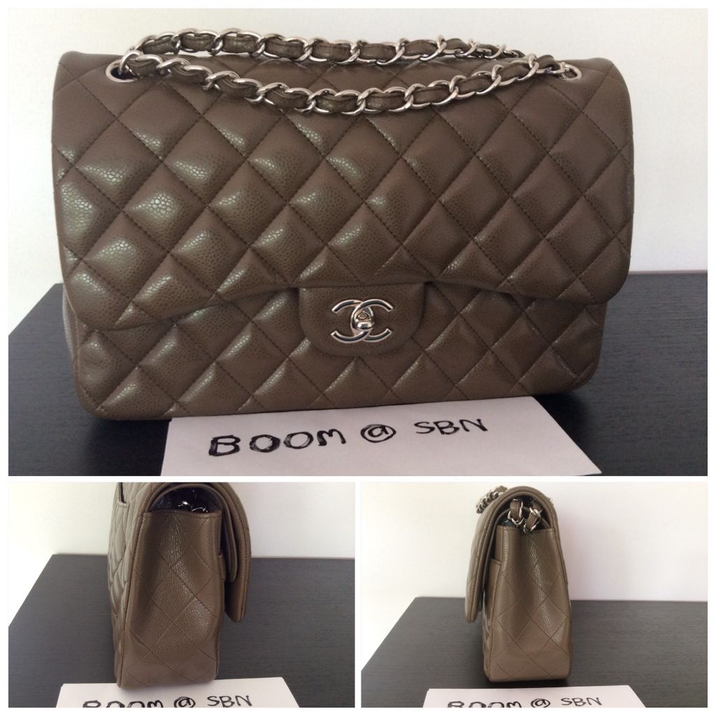 Used like new chanel jumbo caviar kaki colour holo 167 หนังเต่งตึง เงาสวย มุมครบ ฝาหลังมีรอยพับตอนเปิดกระเป๋าเล็กน้อย.ขอรูปเพิ่มได้คะ