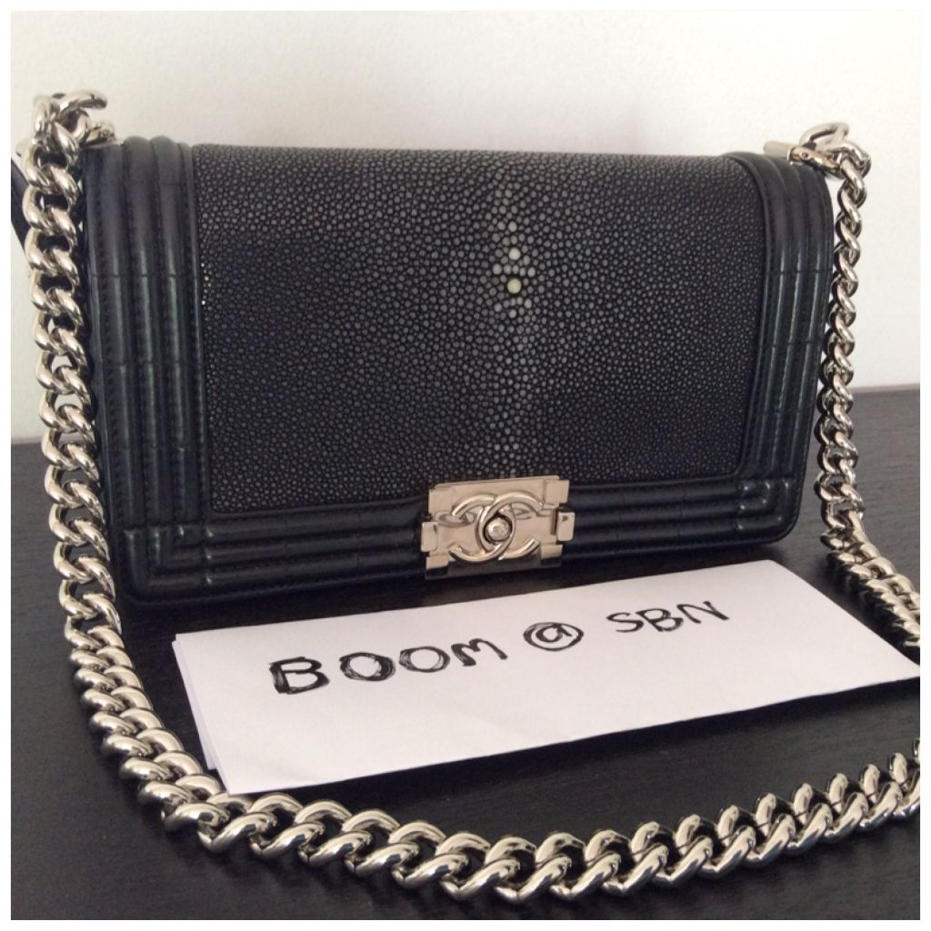 Used Chanel boy black stingray holo161ขนาด 10 " สภาพภายนอกใหม่ ไม่มีริ้วรอย ด้านในเป็นหนังlamb หนังด้านข้างนิ่มลงตามการใช้งาน มีรอยถลอกนิดเดียวที่มุมฝาเปิด มองไม่ค่อยออกคะ โซ่ยังเงาสวยมาก