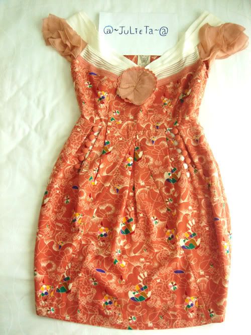 Kloset dress ลาย dust สีส้ม size s แบบคุณจอย มือสองสภาพดีค่ะ ขาย 1900 บาท