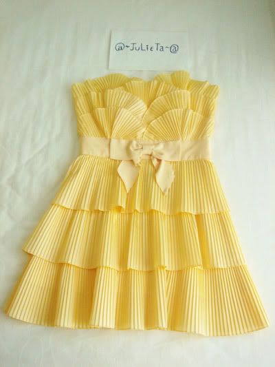 Topshop dress up size uk8 ป้ายห้อย เกาะอกสีเหลืองทอง ผ้าอัดจีบ