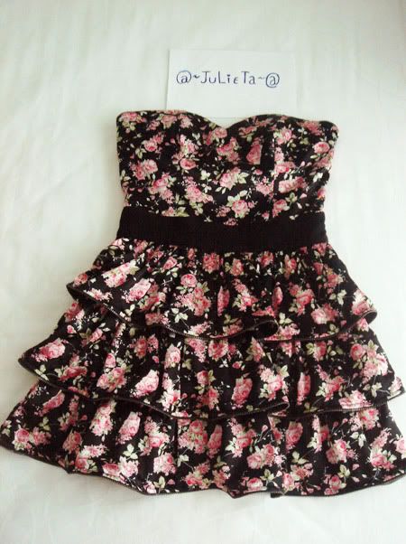 Topshop dress up size uk8 เกาะอกพื้นสีดำ ลายดอกไม้ กระโปรงชั้นระบาย