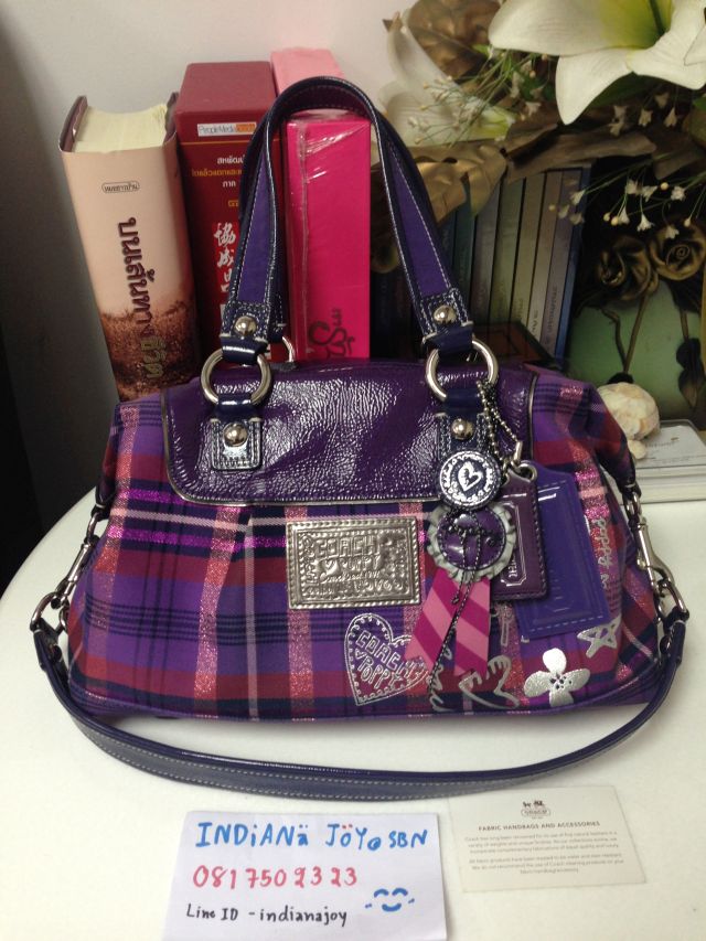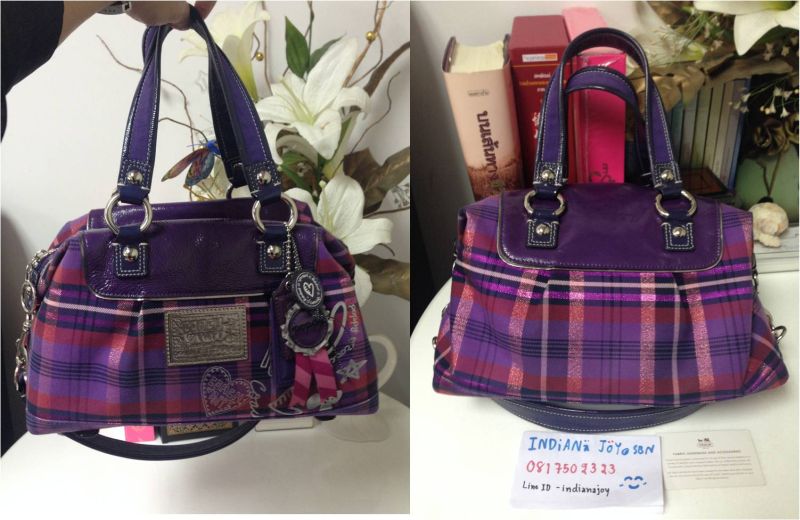 Used Coach poppy tartan หิ้วได้ สะพายสวย