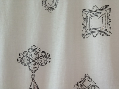 ผ้ายืดด้านหน้า พร้อมกับผ้าพริ้วโปร่งด้านหลัง พิมพ์ลายเพชรพลอย ประดับเลื่อมวิ้งๆ