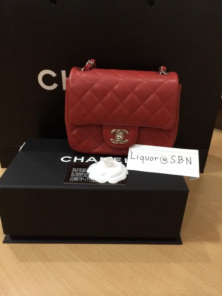 NEW CHANEL mini 7"Sq caviar สีแดง14C สวยมาก