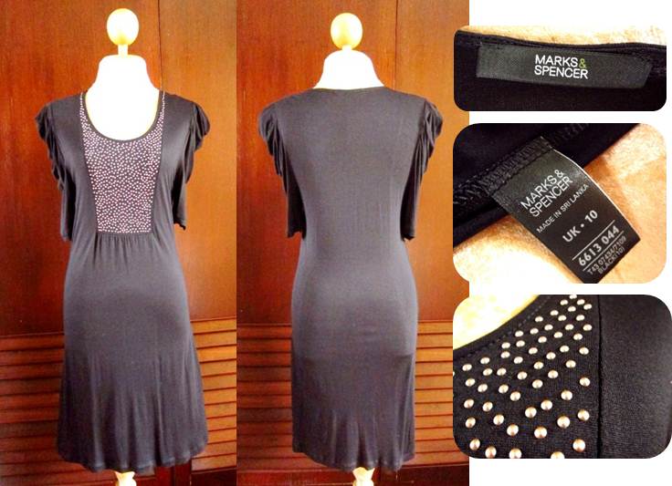 Mark & Spencer Dress ผ้ายืด แต่งหมุดสีทองด้านช่วงอก แขนเป็นสามส่วนนะคะ