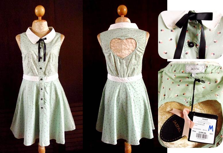 Jaspal Dress Size M ของใหม่ ป้ายห้อยค่ะ โบว์ที่คอสามารถเอาออกได้นะคะ เป็นเข็มกลัดค่ะ detail น่ารักคือ ด้านหลังเจาะเป็นรูปหัวใจค่ะ