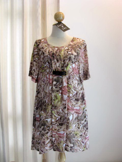Boudoir size UK6 แต่เป็นทรงหลวมๆนะคะ ไม่เล็กมากค่ะ เนื้อผ้ามีน้ำหนักและนุ่มมือมากกกกก ลาย Jewelry น่ารักมากค่ะ ประดับเข็มขัดหนังเล็กๆเพื่อให้ช่วงเอวสวยค่ะ