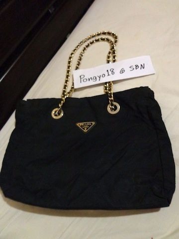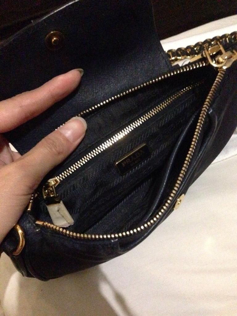 Used Prada Mini Nylon with Gold Chain สีกรม สภาพดีคะ พึ่งซื้อไม่นาน มี ซิบด้านในยังไม่ได้แกะกระดาษเลยคะ สีนี้เข้าได้กะทุกชุด ขาย 12,900บาท (การ์ด, ถุงผ้า)