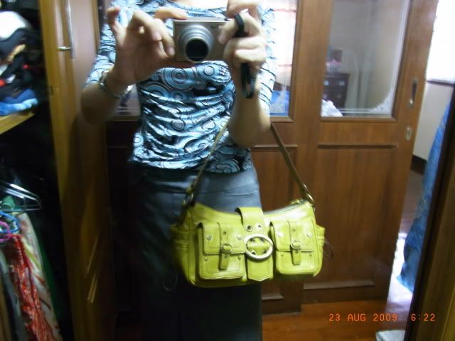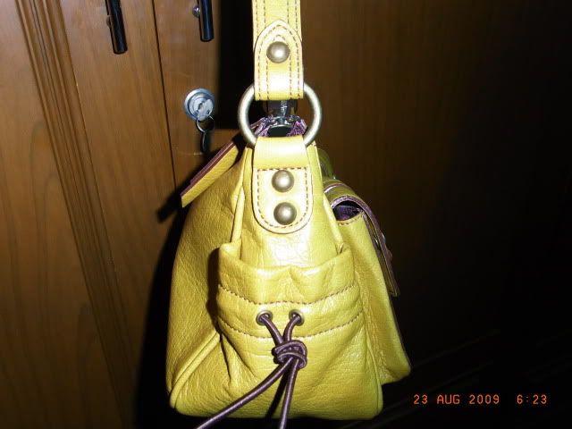 2. กระเป๋ายี่ห้อ MK หนังสีเหลืองมัสตาร์ด ด้านหน้ามีกระเป๋าให้ 2 กระเป๋าเช่นเดียวกันค่ะ