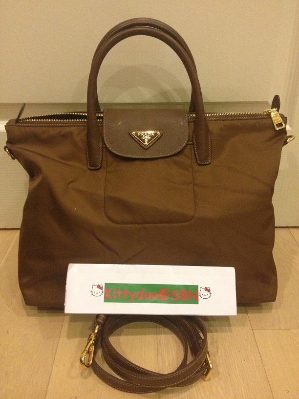 New Prada Nylon Bag Navy Blue and Brown sale 19900