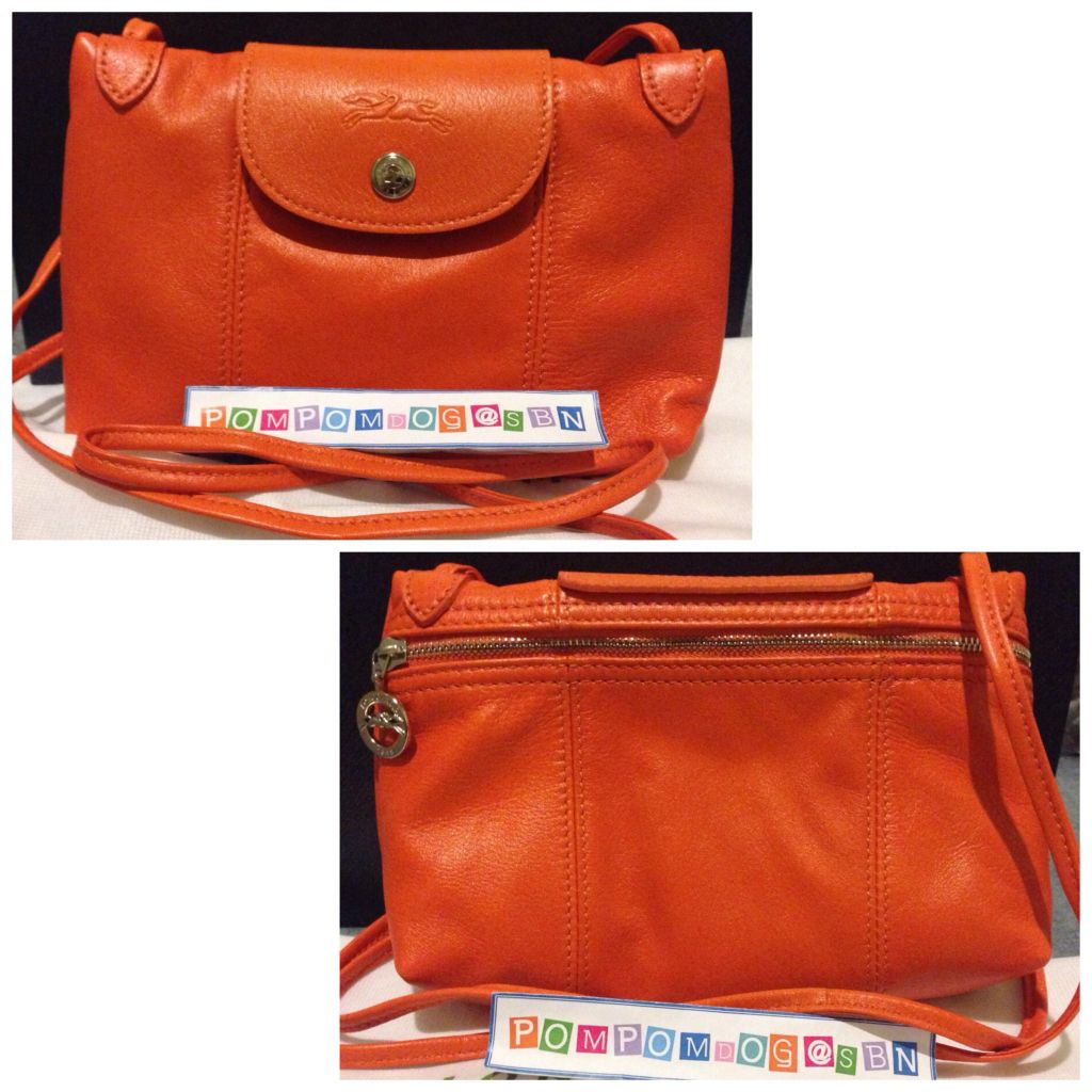 NEW Chanel Longchamp Le Pliage Cuir Black and Orange