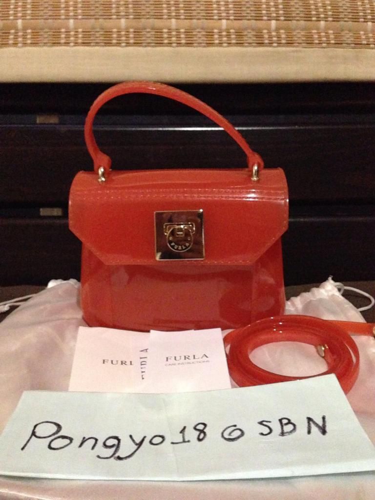 New Furla Mini Candy (New Collection) สีส้ม น่ารักมาก จะถืออกงาน หรือเดินเล่นชิลๆก็น่ารักคะ มีตำหนิตรงตัวล็อกด้านใน เป็นตั้งแต่preมาคะ มีถุงผ้า การ์ด ขายราคาโล๊ะไปเลยคะ 4,700 บาทเท่านั้นคะ!!!!