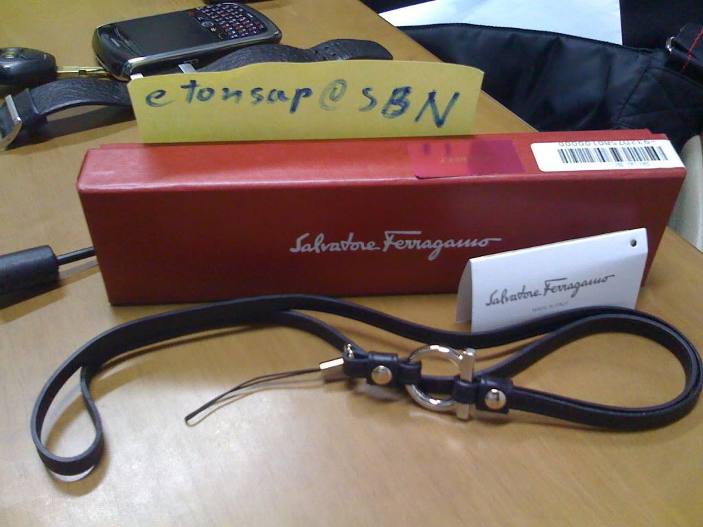 ขายที่คล้องโทรศัพท์มือถือ Ferragamo คับ ของใหม่ สายยาว เป็นหนังสีดำคับ