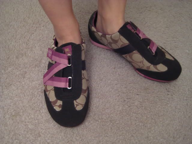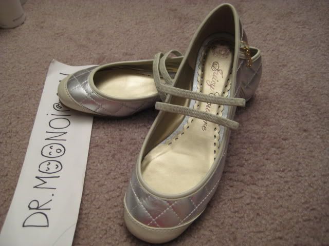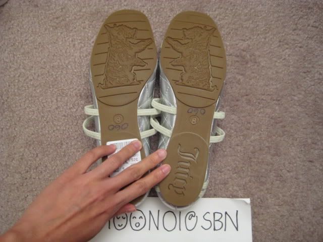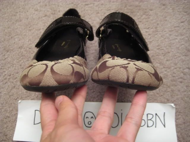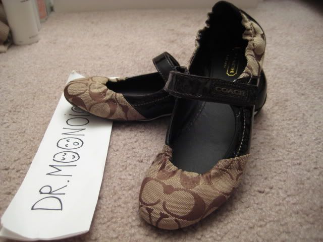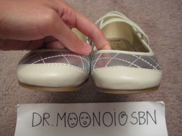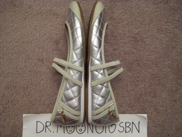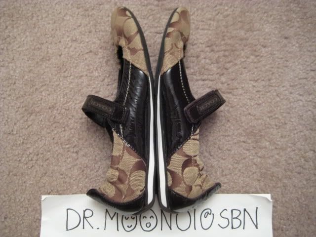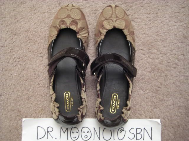 1. รองเท้าสวมส้นเตี้ย ทรงบัลเล่ต์กึ่งๆ Mary Jane's style นะคะ สีกากี ตกแต่งด้วยหนังเงาๆ สีน้ำตาลเข้ม ใส่สบายมากๆนะคะ ได้มาสองคู่ เบอร์เดียวกัน คือ 6 US = 37 = 23 ราคา 4000 บาท งดต่อรองนะคะ