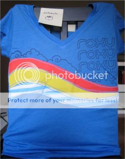 32. Roxy คอ V สีฟ้า ลายนูนรูปคลื่น + ทะเล มีลายทั้งด้านหน้าและหลังนะคะ น่าร้าก Size S รอบอกประมาณ 34 นิ้ว ลดเหลือ 600 บาท