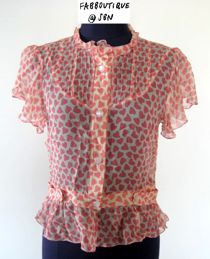 เสื้อผ้าชีฟอง SRETSIS ลายหัวใจ ดูหวาน เเละเป็นคุณหนูมากๆ ราคา 2000 บาท Size S ค่ะ