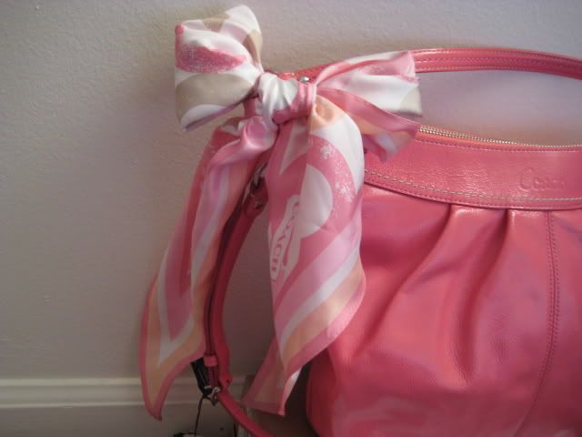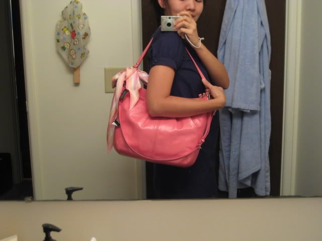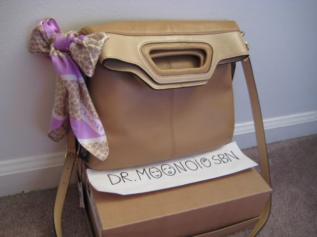 2. กระเป๋าอเนกประสงค์อีกใบ เก๋ไม่แพ้ใบที่แล้วจ้ะ เพราะสะพายได้หลายแบบ ทั้งขึ้นไหล่ สะพายข้างตัวหรือสะพายเฉียง ขนาดใหญ่จุใจรุ่น Soho pleated patent shoulder bag สี rose ขนาด 12"x10"3.5" ราคาเบาๆ ตามน้ำหนักกระเป๋าที่ 6000 บาทนะคะ ส่วนผ้าพันคอที่ใช้ตกแต่งกระเป๋าเป็นผ้าพันคอผืนสามเหลี่ยมราคา 1500 บาท