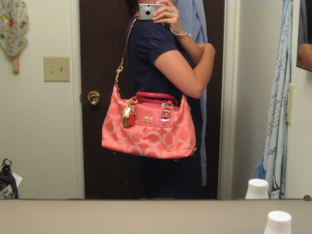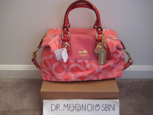 1. กระเป๋ารุ่นฮิตติดลมบน Madison Op Art Sabrina, สีชมพู-ส้ม coral แสนสดใส มีมาใบเดียวนะคะ กระเป๋ามาพร้อม ถุงผ้า care card และกล่องค่ะ ขนาด 12"x7"x5" ราคา 12500 บาท งดต่อรองนะจ้ะ