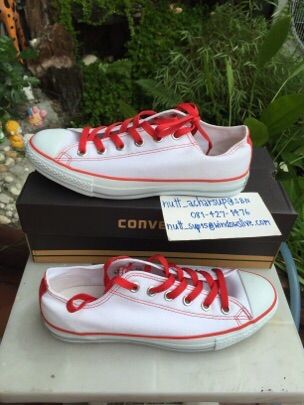 [/IMG]ขอส่งต่อรองเท้า Converse All Star (size : 7US) สีขาวตัดกับเชือกแดง น่ารักแบบเซอร์ๆจ้า ยังไม่ได้ใส่ออกข้างนอก แค่ลองใส่อยู่ในบ้านเท่านั้นค่ะ ส่งต่อ 980 บาท(รวมส่งลงทะเบียนให้จ้ะ)