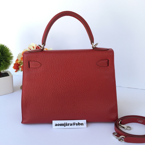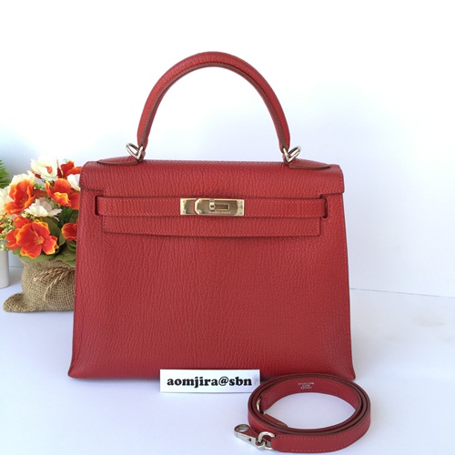 Used Hermes Kelly 28 chevre sellier coromandel Rouge vif phw stamp G