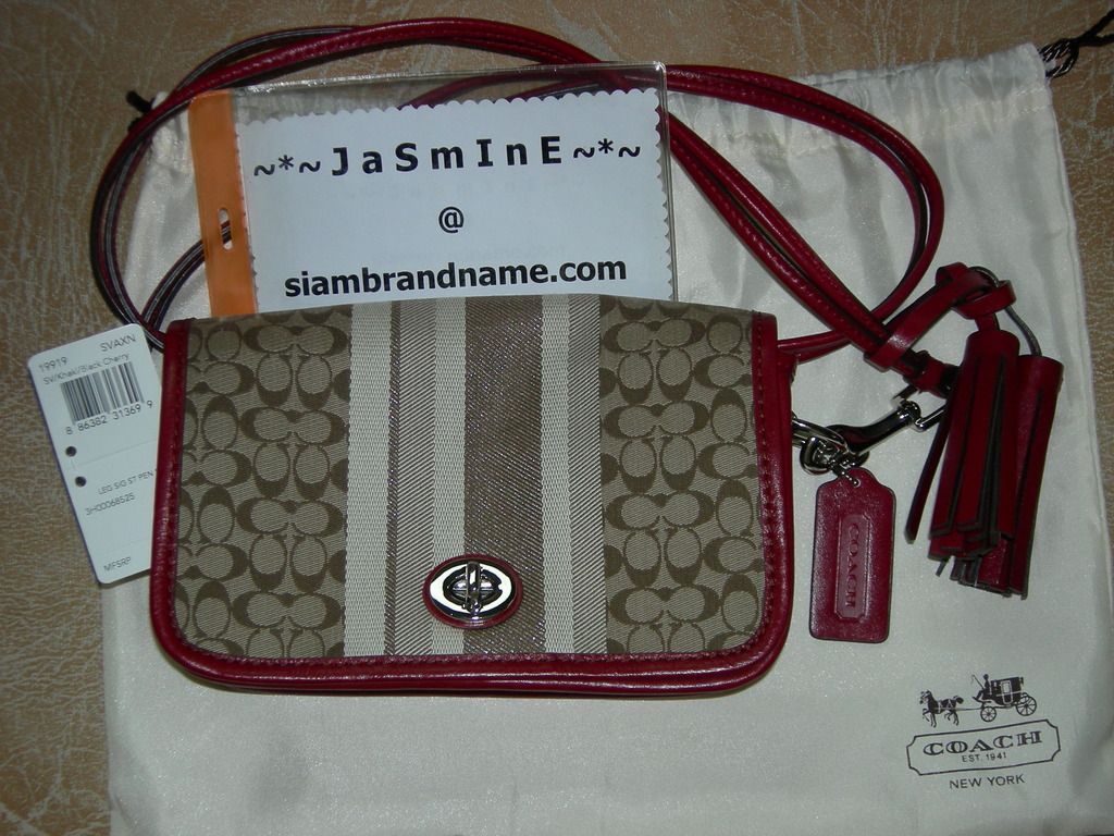 2) Coach 19919 Signature Stripe Penny Shoulder Purse --- khaki/cherry