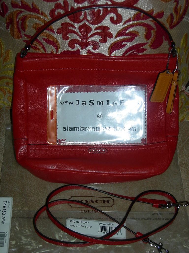 3. Coach F49160 Park Leather Mini Duffle Crossbody --- silver/vermillion --- หนังทั้งใบ