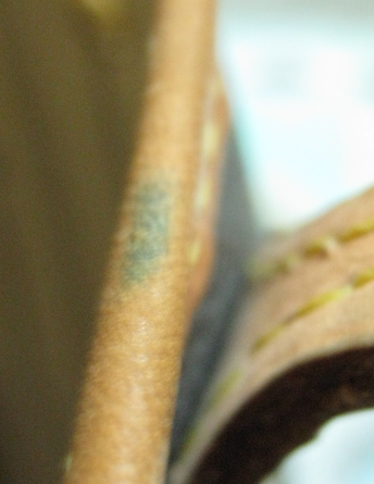 มีตำหนิบ้างตามรูป คือ หนังสีเข้มขึ้นแล้วแต่ไม่ดำ (ยกเว้นสายด้านใน)