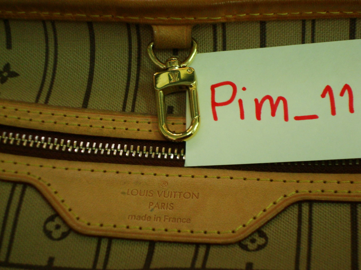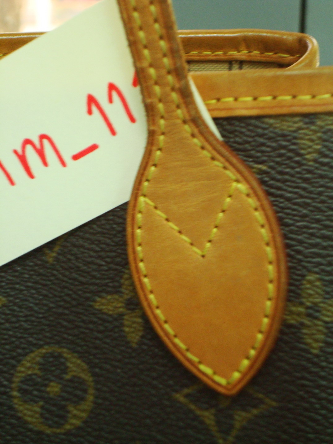 มีรอยปากกาจางๆ ที่ขอบกระเป๋า จางมาก ตรงหูกระเป๋าพอดี(ตามรูป)
