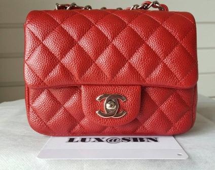 RARE!!! Chanel Mini 7" SQ สีแดงชมพูเคลือบ glitter Holo 204
