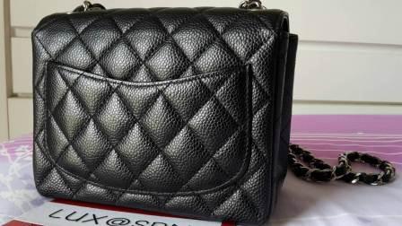 RARE! Used Chanel Mini 7 SQ Caviar ดำเย็บขอบ