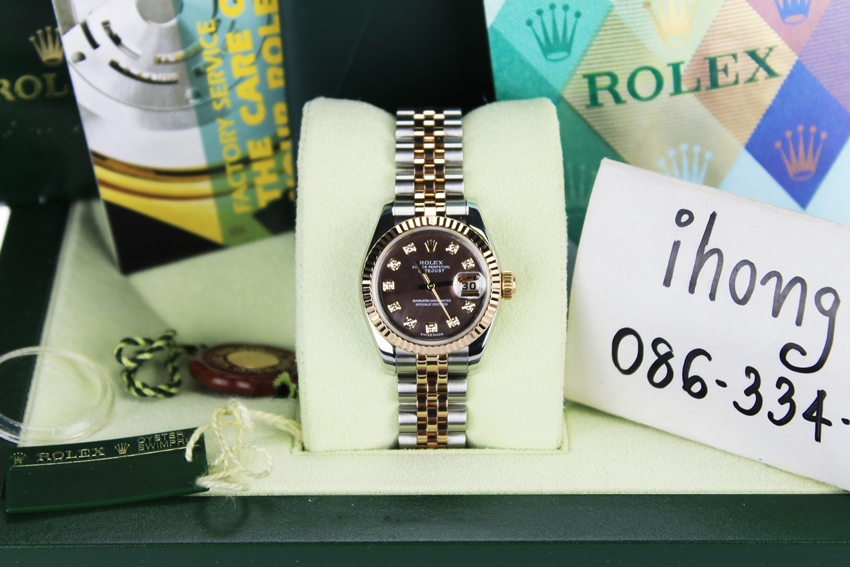 Rolex Ladies Datejust 18K Pink Gold w Black Mop Dial 2กษัตรย์ ทองชมพู หน้ามุขดำเพรช อุปกรณ์ครบครับ