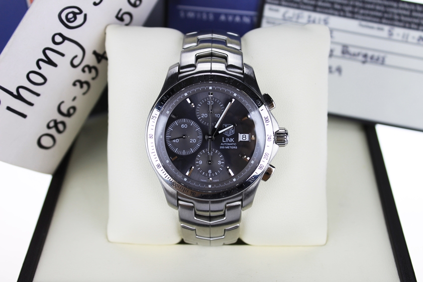 Tag Heuer Link Mens Chrono หน้าเทา สวยๆ กล่องใบ ข้อครบหมดเลยครับ สายเป็นแบบกด รุ่นใหม่แล้ว 57,000 บาทเลยครับ