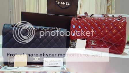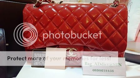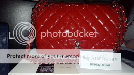 USED in mint!! CHANEL RED JUMBO PATENT SHW DOUBLE FLAP HOLO 14XXX...