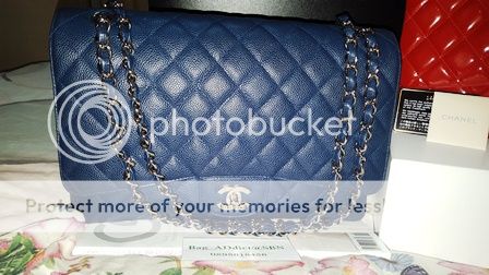 USED in mint!! CHANEL MAXI CAVIAR IN NAVY BLUE SHW HOLO 13XXX..