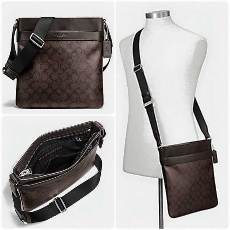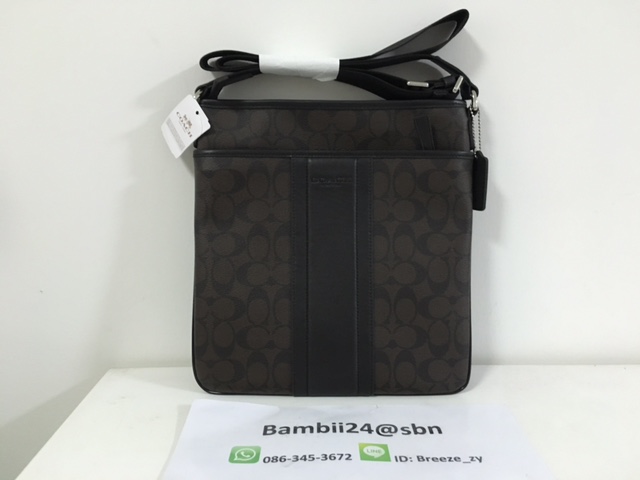 พร้อมส่ง กระเป๋าผู้ชาย COACH F71131 HERITAGE SIGNATURE SMALL ZIP TOP CROSSBODY เป็นแคนวาส ขอบหุ้มหนังแท้ สวย ทนทาน ขนาดกำลังดี สายปรับได้ สะพายได้ 2 แบบ สะพายไหล่หรือสะพายข้างก็เท่ห์