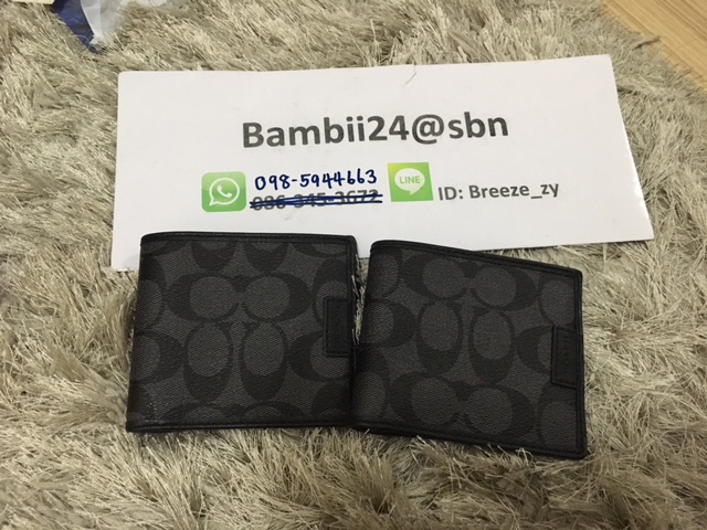 COACH F74739 กระเป๋าลาย signature ของ COACH สีดำ ด้านในมีช่องใส่บัตร 6 ช่อง และช่องใส่ธนบัตร 2 ช่อง ขนาด 4 3/8"(L) x 3 7/8"(H) ราคา 3190 บาท