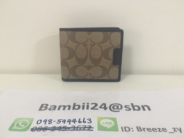 กระเป๋าสตางค์ผู้ชาย รุ่น COACH HERITAGE SIGNATURE COMPACT ID WALLET กระเป๋า COACH ลาย SIGNATURE สีน้ำตาล ใบใหญ่ เหมาะสำหรับคนที่ชอบกระเป๋าสตางค์แบบมีที่ใส่บัตรได้หลายช่อง และยังมีที่ใส่นามบัตรแบบแยกส่วนได้ ขนาด 4 1/2"(L) x 3 3/4"(H) ราคา 3390 บาท