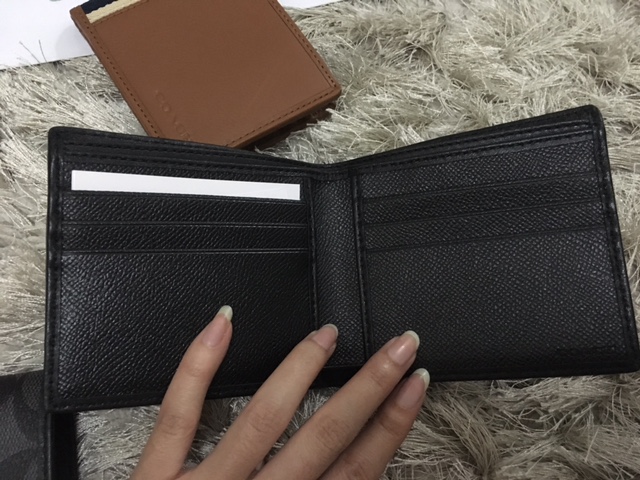 coach F74880 กระเป๋าสตางค์ผู้ชาย ขนาดกระเป๋ากว้าง 10 cm. สูง 8 cm. หนา 1.5 cm. ตัวกระเป๋าเป็นหนังแท้สีน้ำตาล มีช่องใส่รูปกับใส่บัตร ขนาดกำลังดี พกพาง่าย