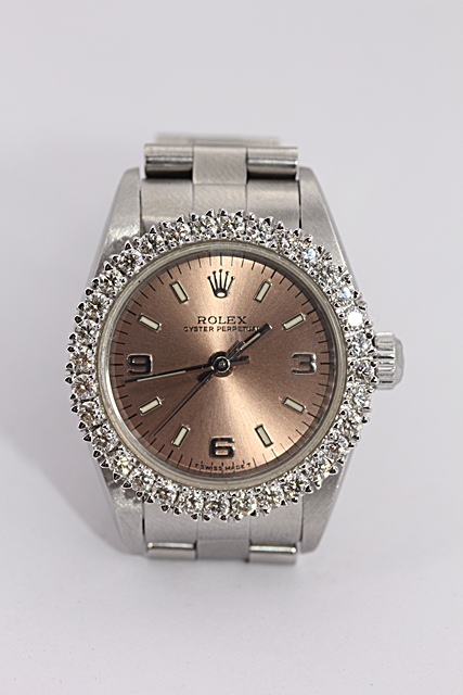 โรเล็กซ์ซีรีย์7 เครื่่องรุ่นเดียวกับปัจจุบัน สวยงามด้วยเพชรในรุ่นใหม่ และล้อมขอบเพชรเม็ดละสามตังค์อีกสามสิบหกเม็ด สายตึงๆ ใช้งานง่ายได้ทุกเมื่อ คลาสสิคตลอดกาล หน้าคอมลึกชัดเจนสุดๆราคา 165,000 พร้อมกล่องและใบจากศูนย์ค่ะ