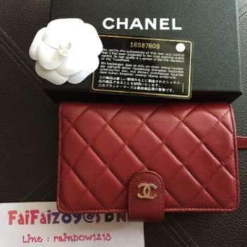 ✮ USED like new CHANEL TRIFOLD wallet Red Lampskin holo16