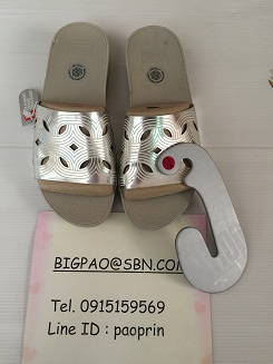 Fitflop Jewelry Slide Leather Silver size UK6/39 ขอบไม้ก๊อค สุดเก๋