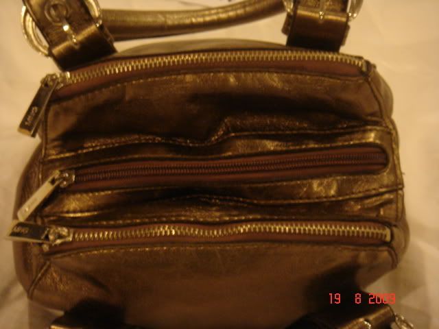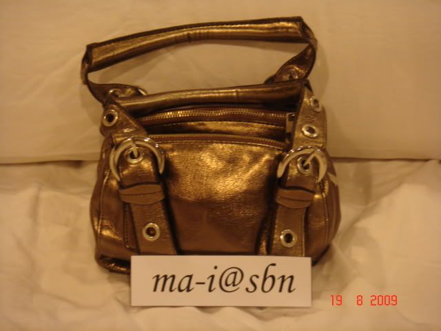 7. กระเป๋า MNG สีน้ำตาลเมทาลิค มีรอยถลอกและลอกของหนังเล็กน้อยจากการเก็บ (ตรงด้านในของหูกระเป๋า) ส่วนด้านหน้าและตัวกระเป๋าไม่มีถลอกนะคะ แม่ค้าซื้อจากฮ่องกงคะ ไม่เคยใช้ เก็บอย่างเดียว มี 3 ช่องซิปนะคะ ขนาดกว้าง 7 สูง6 หนา 5 นิ้ว ขอขาย 180 บาท (SOLD)