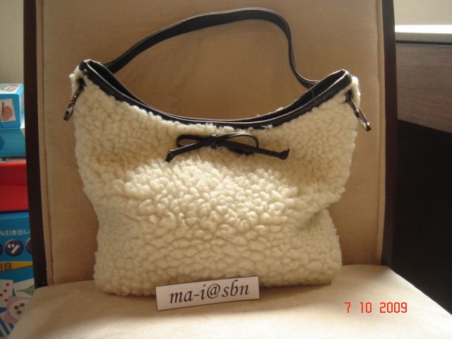 10. กระเป๋าขนปุย น่ารักมากๆ คะ ซื้อจากเกาหลี ได้มายังไม่เคยใช้เลยคะ เก็บอย่างเดียว ขนออกเป็นสีออฟไวด์นะคะ ภายในสะอาดเอี่ยม หนังใหม่ อะหลั่ยดำรมควันเงาวับ ขนาด กว้าง 11 สูง 9.5 นิ้ว ขอขาย 500 บาท (SOLD)