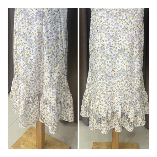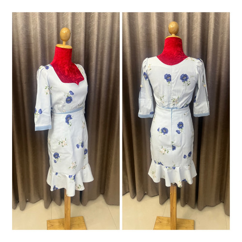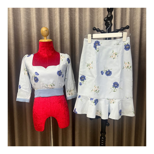 61.PIM BY PIMLEE SIZE S SET เสื้อ + กระโปรงสีฟ้าลายดอกสวย เป็นของใหม่ค่ะ NEW เสื้ออก 34 กระโปรง เอว 26 สะโพก 36 ชายระบายสวยมาก ค่ะ คัตติ้งหรูมาก ๆ ค่ะ ขาย 230 บาท ได้ทั้งชุดถูกมากกก ราคาเต็มทั้งชุด 2,790 บาท (ไม่ร่วมโปร)