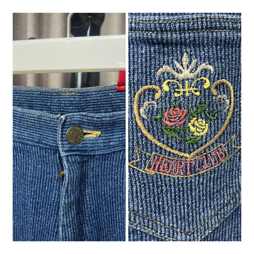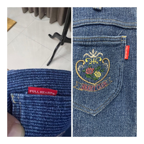 22.FULL HEART SIZE M กางเกงยีนส์แบรนด์ญี่ปุ่น น่ารักม๊ากกกก เอวสูง ผ้านิ่มใส่สบาย ๆ ค่ะ สภาพใหม่กิ๊กๆๆๆ เอว 27-28 สะโพก 37-40 ผ้ายืดหยุ่นค่ะ สวยเก๋น่ารักมาก ๆ คะ ปักหลังเก๋ ๆ น่ารัก ทรงสวยมาก ๆค่ะ ขาย 270 บาท (ไม่ร่วมโปร) // CF //