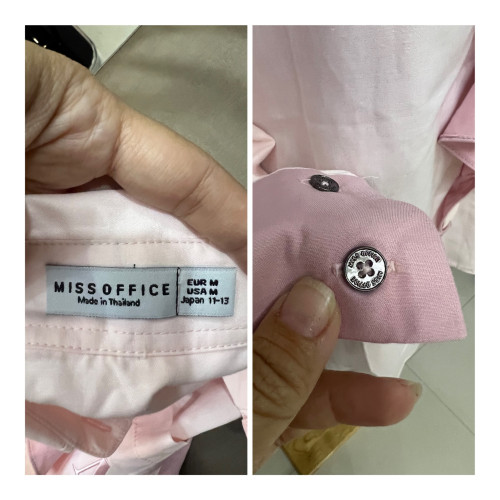 31.MISS OFFICE SIZE M เสื้อสีชมพูแบบเก๋ ระบายหน้า น่ารักมาก ๆค่ะ ปัก logo อกเก๋ ๆ คัตติ้งเนี้ยบ ๆ กระดุม logo สวยมากค่ะ สภาพใหม่กิ๊กๆๆๆ อก 35+ ขาย 220 บาท (ไม่ร่วมโปร) น่ารักมาก ๆ ค่ะ
