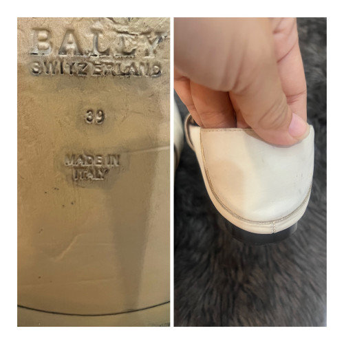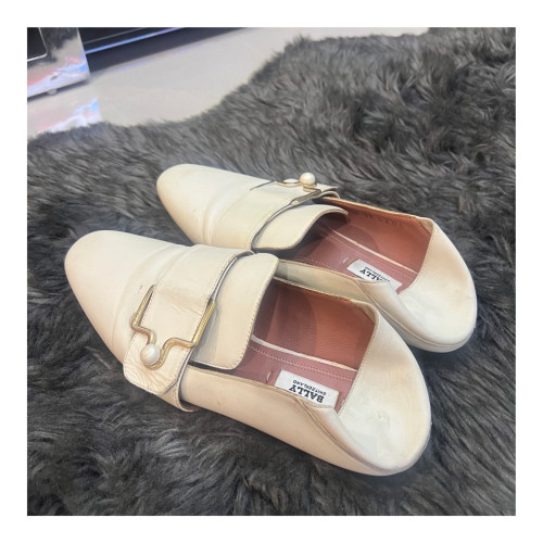 1.BALLY SWITZARLAND MADE IN ITALY รุ่น JANELLE SIZE 38-39 เหมาะกับ 38 เป็นหนังแท้ค่ะ ของแท้ล้านเปอร์เซ็นต์ หนังใส่สบายมาก ๆค่ะ สวยมาก ๆ สภาพดีมาก ๆ รุ่นนี้ใส่แบบสวม หรือใส่แบบทับส้นได้ค่ะ สี off white สวยเก๋ แบบใส่ได้เรื่อยๆค่ะ ราคาเต็มหมื่น up ขาย 450 บาท(ไม่ร่วมโปร) // CF //