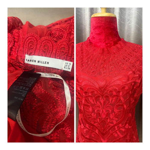 38.KAREN MILLEN SIZE UK10 M เดรสสีแดงลูกไม้ คัตติ้งหรู สวยหรูสุด ๆ ค่ะ สภาพใหม่กิ๊กๆๆๆ อก 34++ เอว 27-28 สะโพก 37-40 ผ้าหรูมาก ๆค่ะ สวยหรูสุด ๆลูกไม้สวยมาก ขาย 350 บาท (ไม่ร่วมโปร) // CF //
