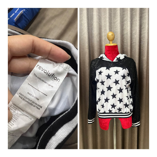 62.REVOLUTION SIZE M เสื้อแบบเก๋ คัตติ้งหรู ๆ น่ารักม๊ากกกก ลายดาว แต่งปักเลื่อมเก๋ ๆ แต่งฮูท น่ารักสุด ๆ ค่ะ สภาพใหม่กิ๊กๆๆๆ อก 34++ ขาย 170 บาท แนะนำมาก ๆ ค่ะน่ารักมาก ๆ
