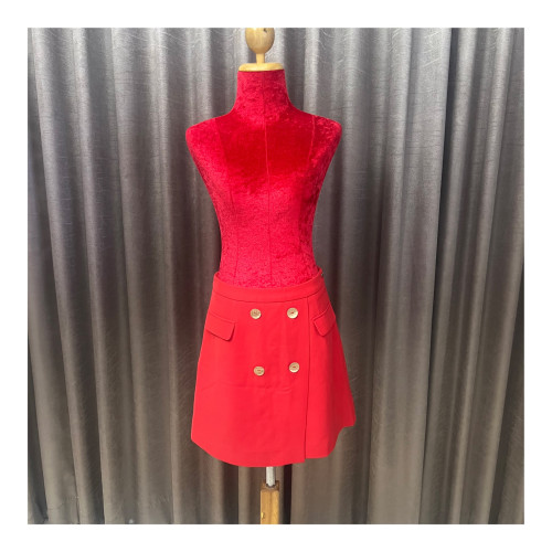 44.ESP SIZE M กระโปรงสีแดง แบบเก๋สวย กระดุมทอง สภาพใหม่กิ๊กๆๆๆ เอว 28 สะโพก 37-40 ทรงสวยน่ารักค่ะ ผ้าดีมาก ๆค่ะ ทรง A ขาย 170 บาท (ไม่ร่วมโปร)